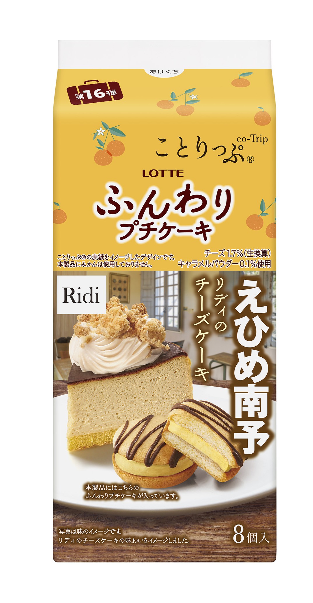 【愛媛県】コラボスイーツ発売。ロッテとことりっぷと、大洲のカフェ「Ridi」がコラボしたふんわりプチケーキが2025年10月28日発売されました。