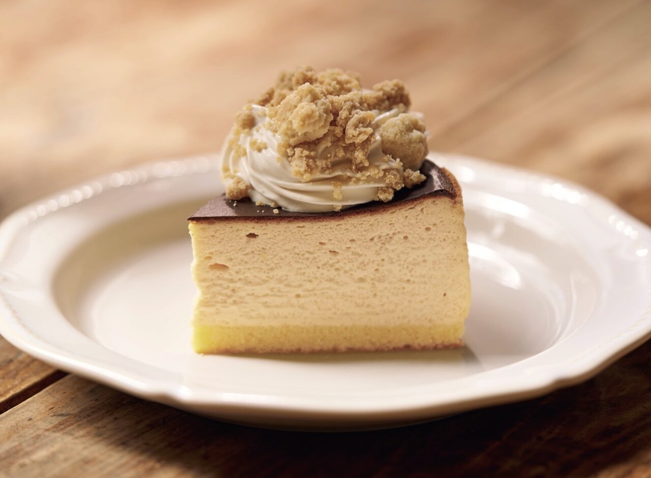 生地にビターキャラメルパウダーが練りこんであるので優しい甘味を感じます。チーズが主役ですが重さがなく、キャラメルの香ばしさがアクセントになっていました。