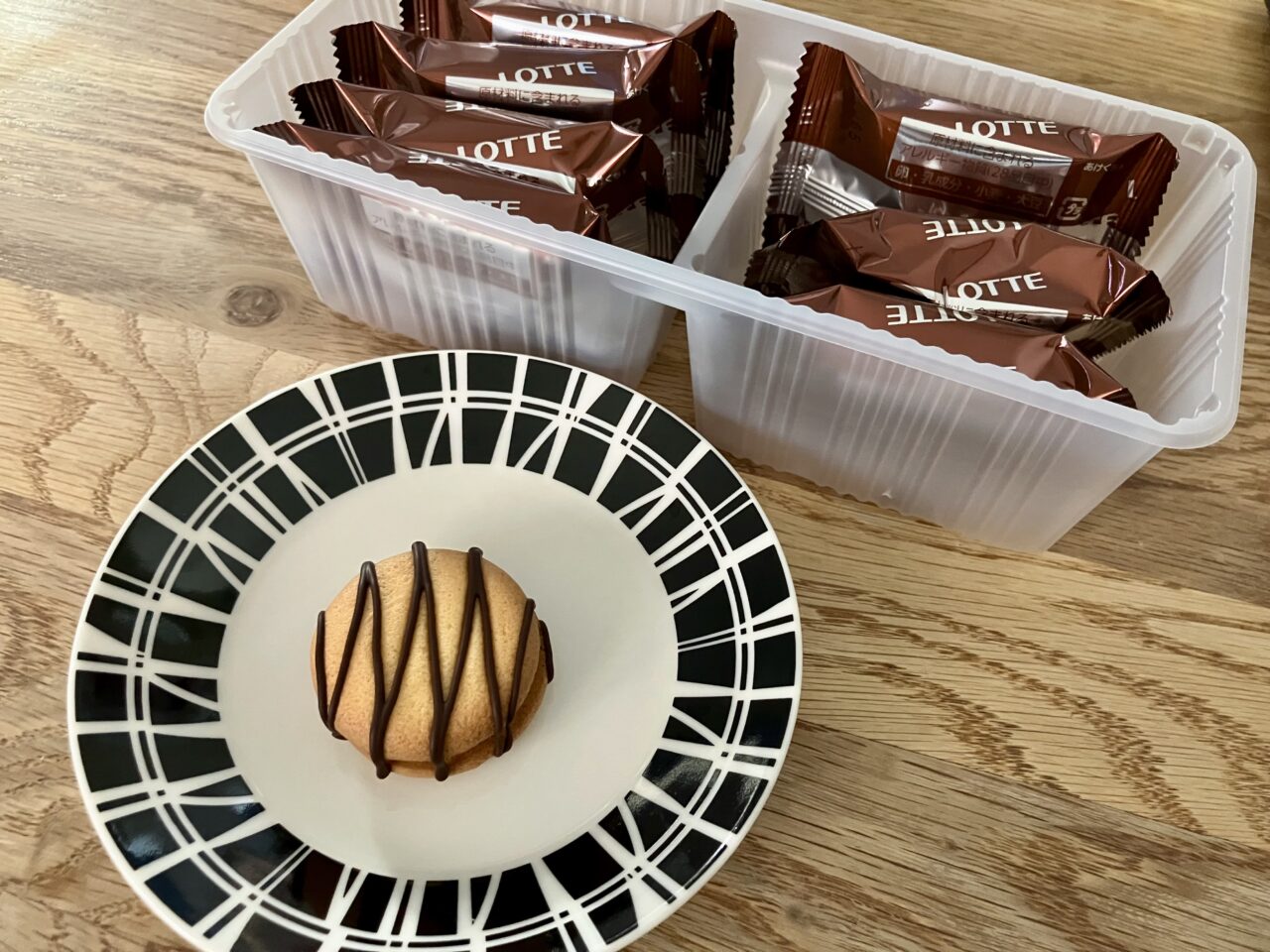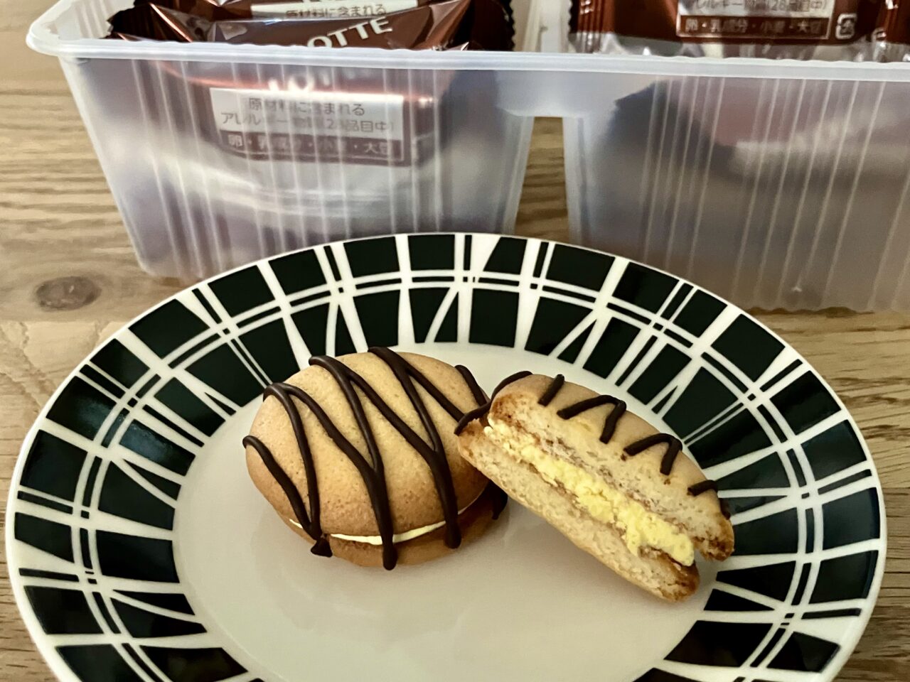ロッテ様にご提供いただき、試食しました。クリームチーズとエメンタールチーズを使ったクリームを、ビターキャラメルパウダーとチーズパウダーを練り込んだ生地でサンドしたふんわりプチケーキ。