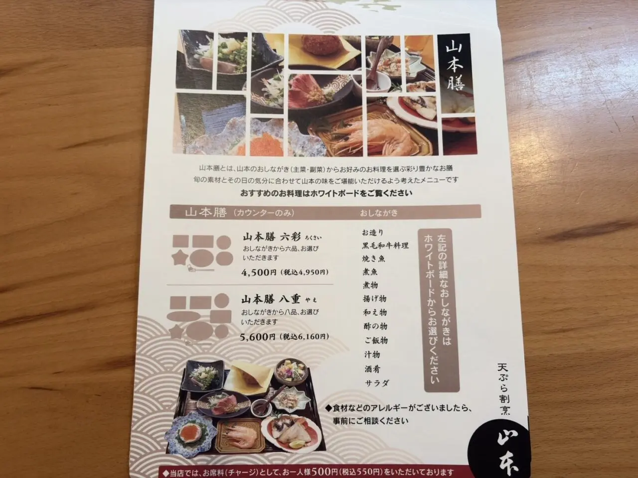勝山通りにある人気和食店「日々旬味旬菜 山本」が、屋号を「天ぷら割烹山本」にリニューアルしていました。