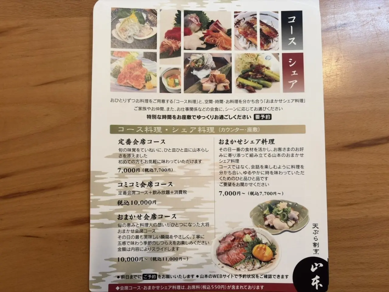平成16年にオープンして、飲食店激戦エリアで22年。料理が本当に美味しい、と有名です。今回リニューアルし、好きな料理を選べる「山本膳」、カウンターで揚げたてを味わえる「天ぷらコース」、「会席コース」、コースほど食べられない…でも牡蠣は食べたいとか唐揚げを入れて、この料理は苦手…など要望を叶えてくれる「おまかせシェア料理」など、メニューが一新されています。