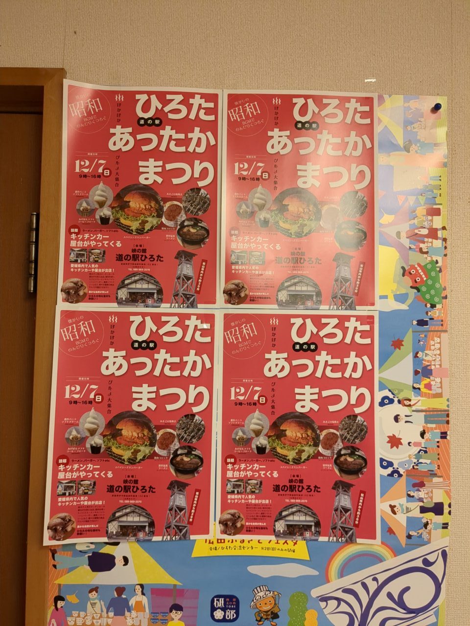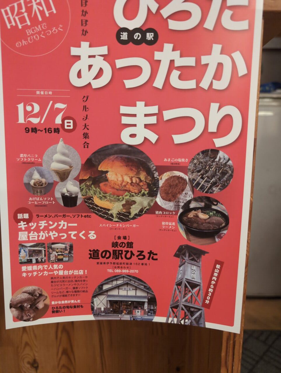 号外NET中予読者様から情報提供いただきました。2025年12月7日、道の駅ひろた「峡の館」で「ひろたあったかまつり」が開催されるそうです。