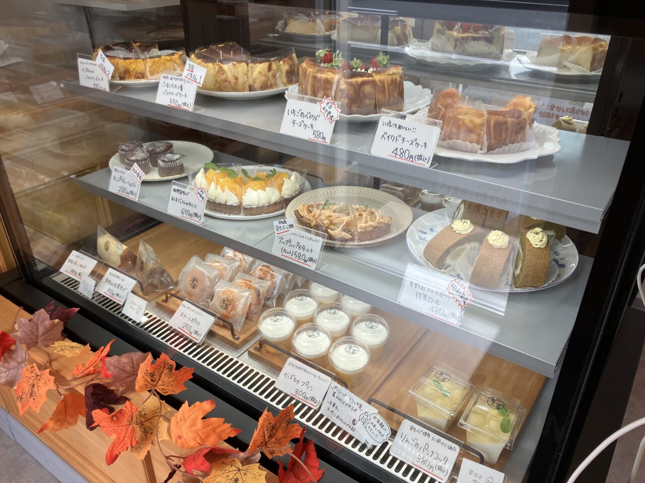 一組入れるくらいのこぢんまりとしたお店。ショーケースと、焼き菓子が置いてある棚がありました。