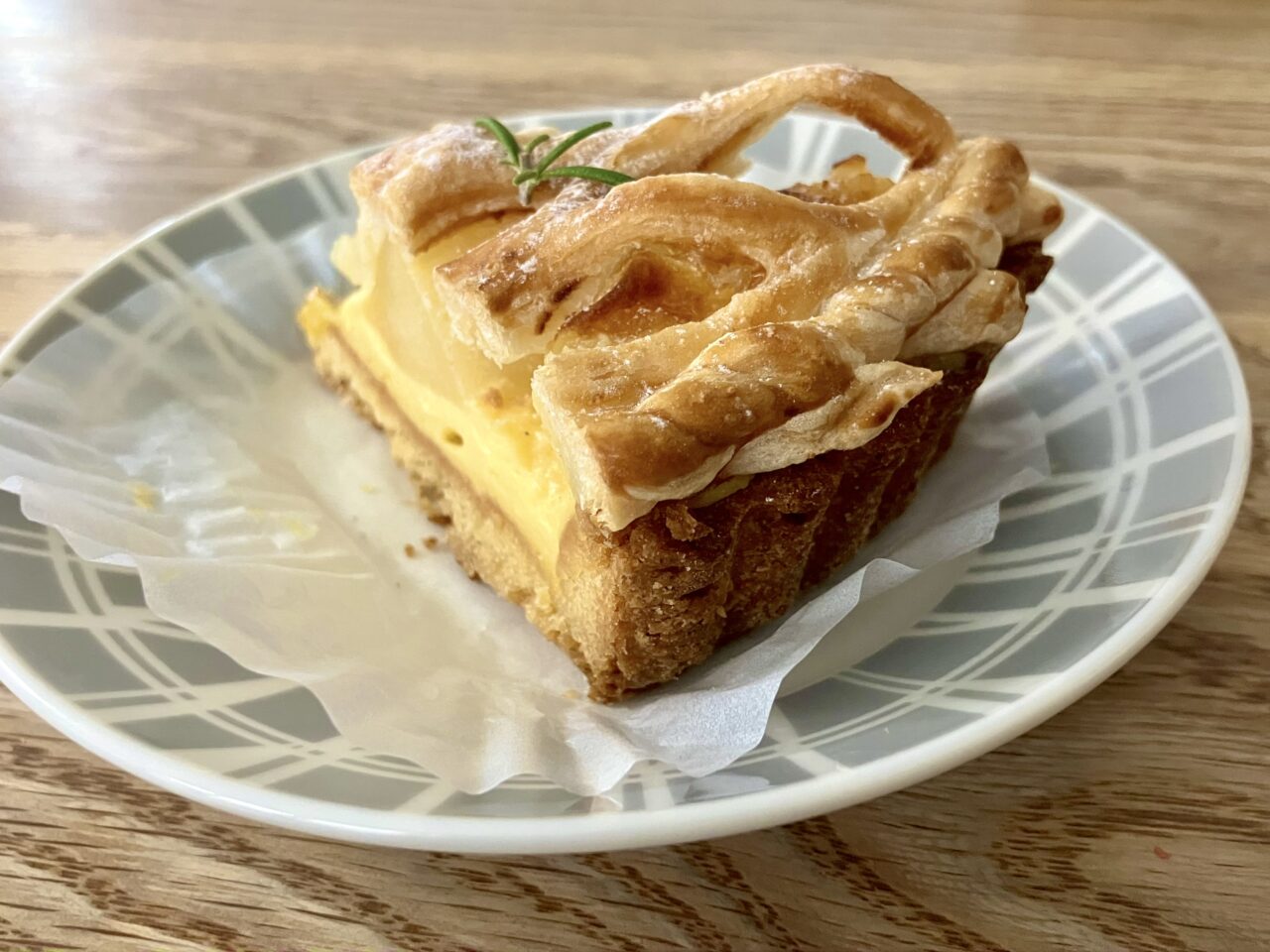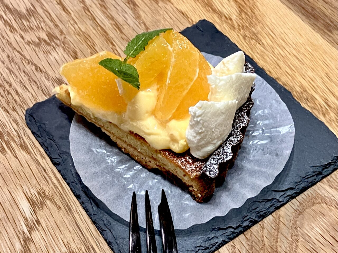 タルトの上に手作りカスタードとりんご、そして手作りのパイがのっていてとても丁寧に作られています。こちらもりんごがごろっと入っていて食べごたえのあるケーキ。とろとろのカスタードクリームと果物が合わさり、とっても美味しかったです。