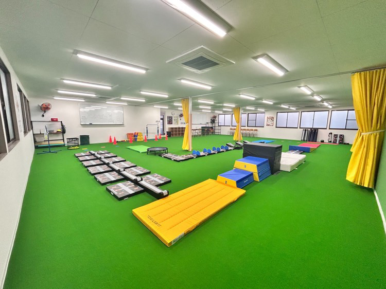 ・教室内は人工芝・特殊マットや、十分な換気・除菌・空調設備による衛生管理も整っており、安心して運動できる環境が整えられています。