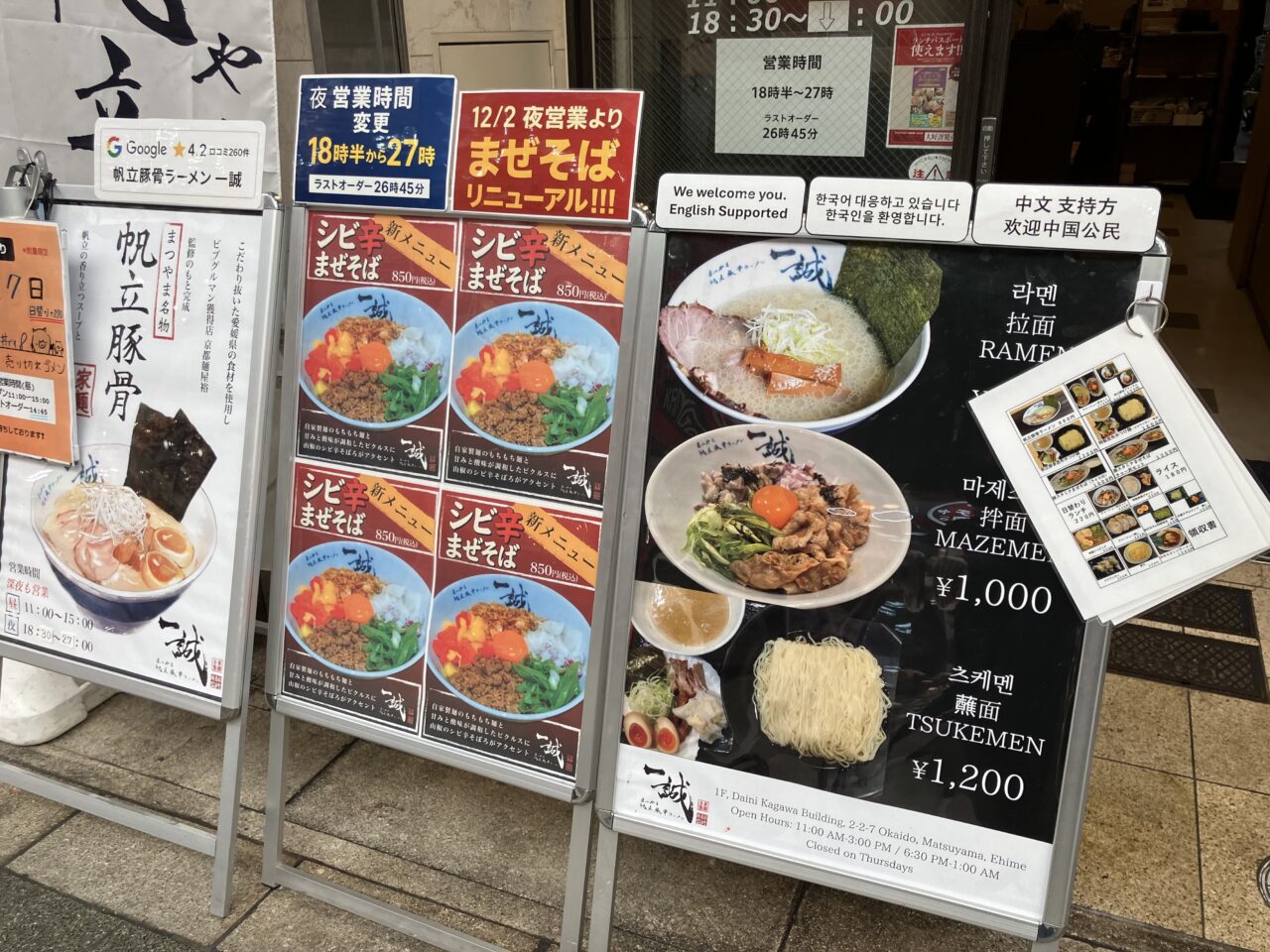 【松山市】もう試した?「まつやま帆立豚骨ラーメン一誠」の新メニュー。まぜそば、つけ麺、チャーシューメン実食、期待を超える美味しさ。