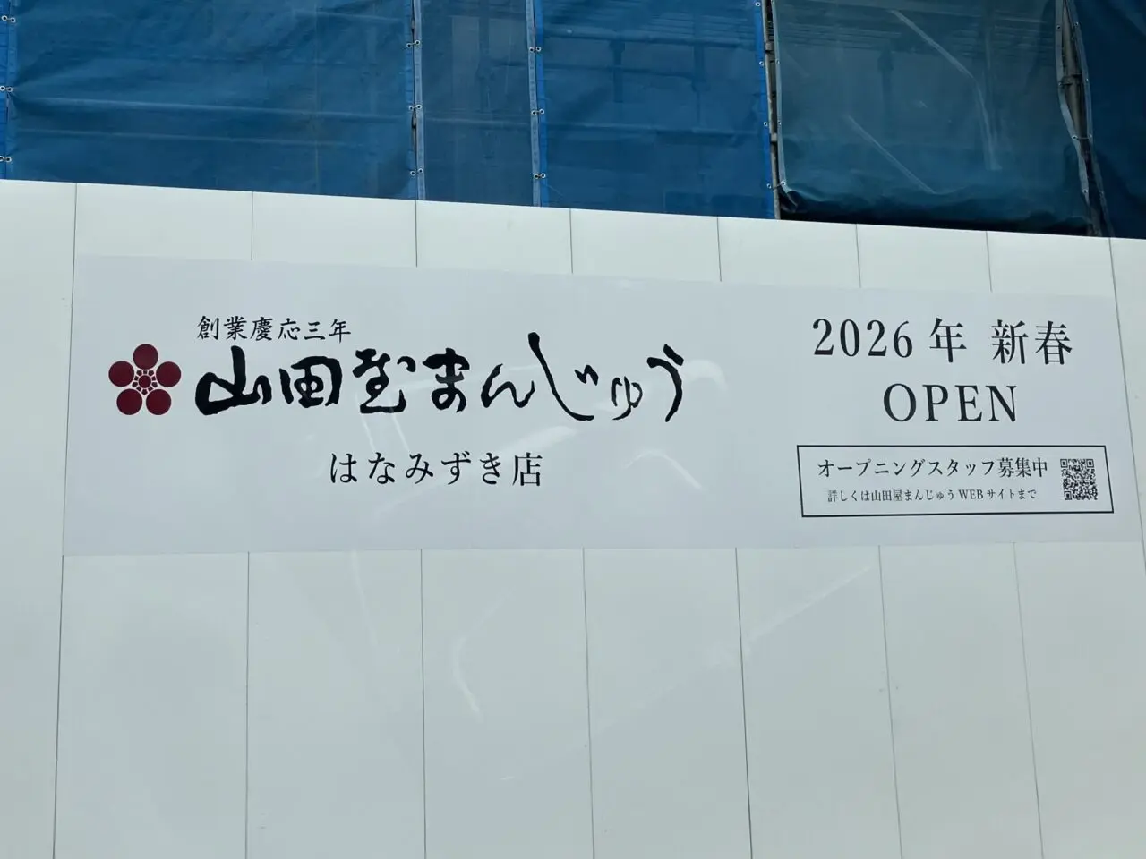 「山田家まんじゅうはなみずき店」「2026年新春OPEN」とあります!求人も出ていました。