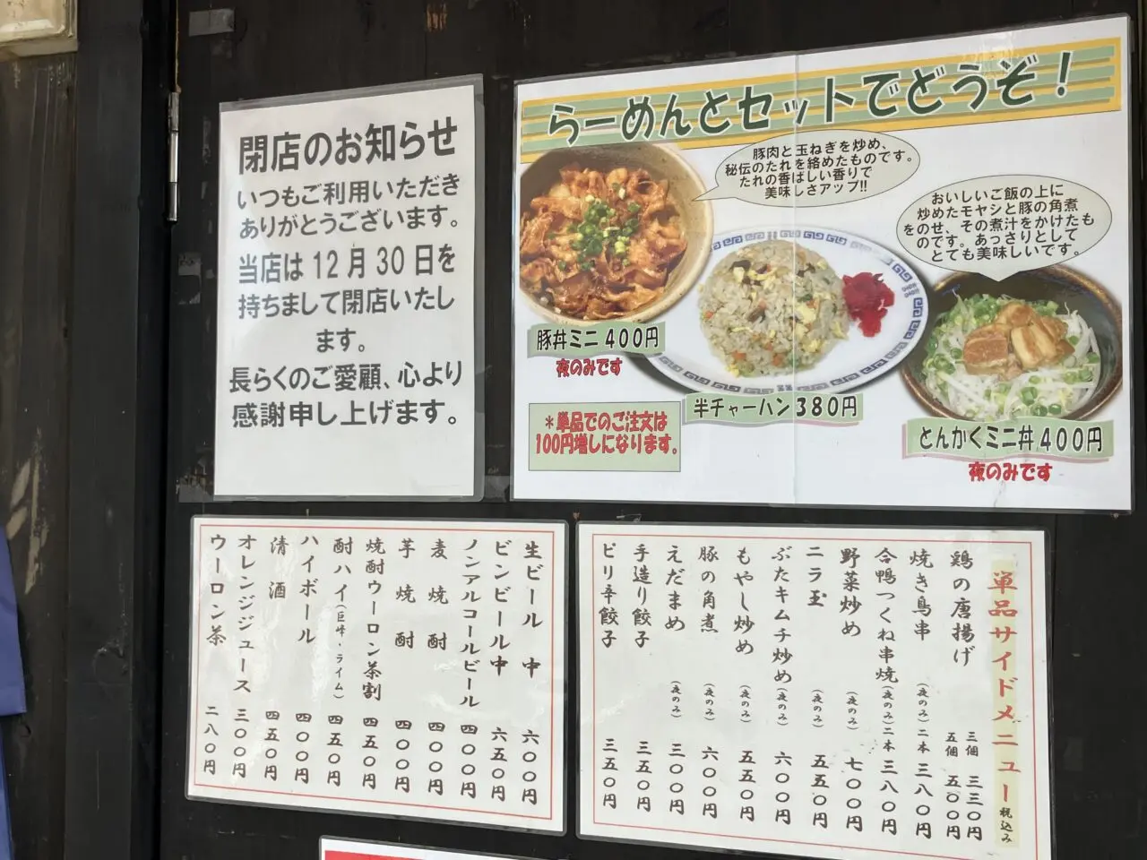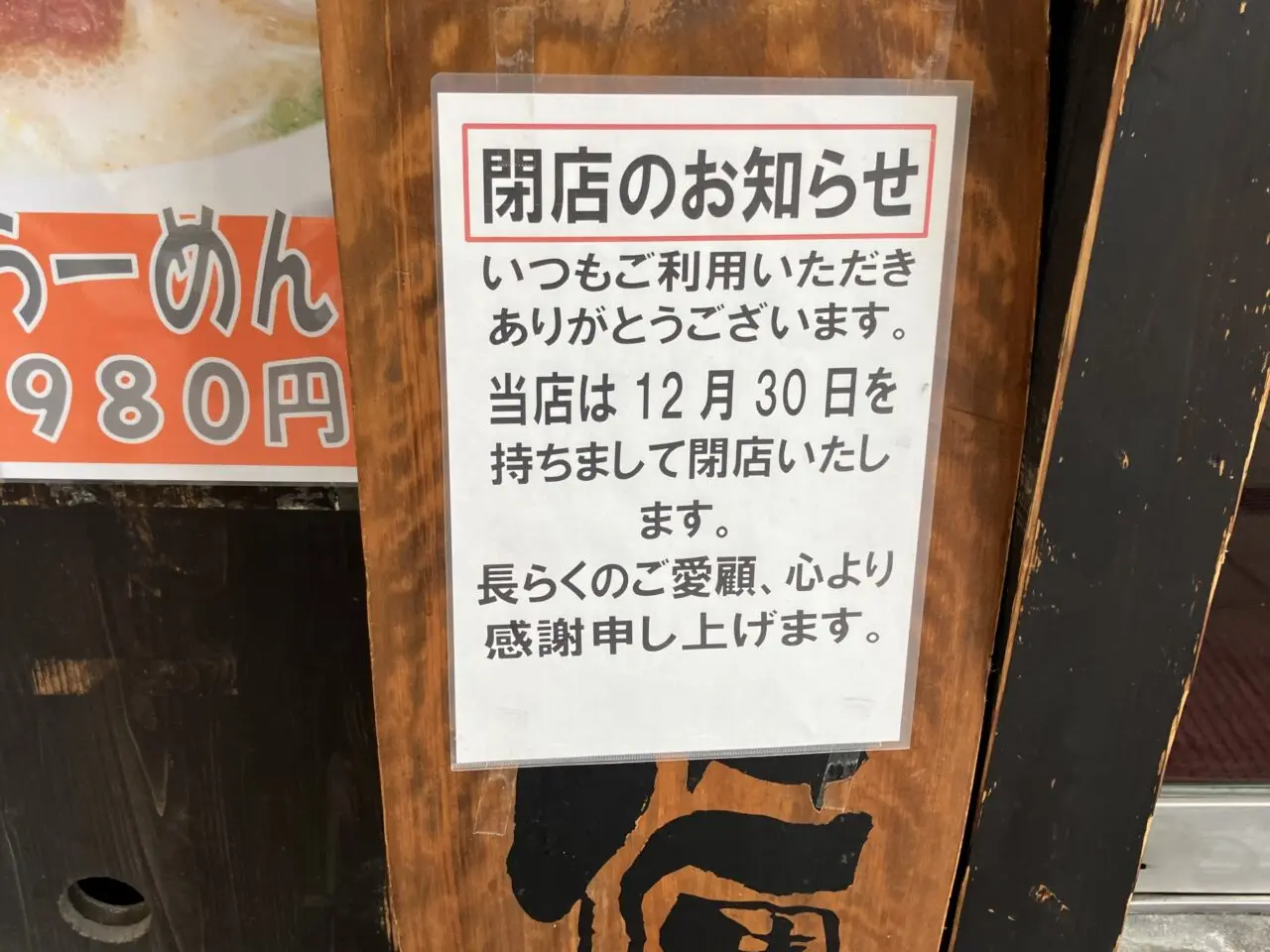 店頭に「2025年12月30日を持ちまして閉店いたします」と貼り紙がありました。閉店理由などはわかりませんでした。