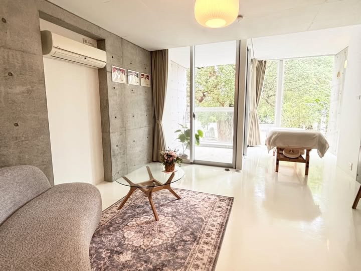 nyudougumoは女性専門サロンのため、周囲を気にせずリラックスできる環境が整っています。窓から優しい自然光が差し込み、緑が揺れるホッとする空間です。静かな空間で施術を受けることで、身体だけでなく心の緊張もゆるめることができそう。
