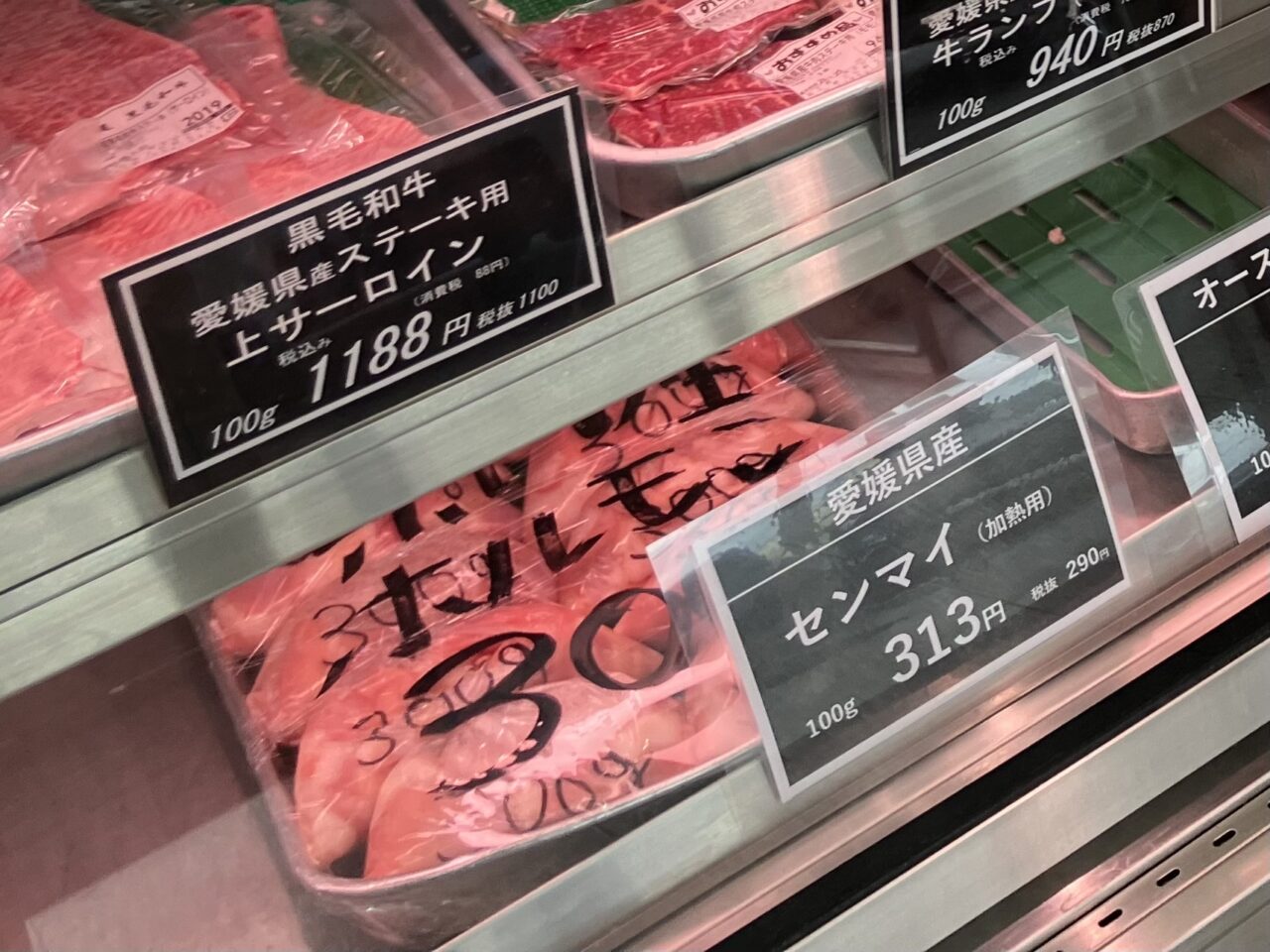 創業以来、県内産の和牛、豚、鶏等を中心に取り扱っているそうです。近隣に大型スーパーがあるものの、愛媛県産と鮮度にこだわりをもって仕入れており、普段使いからちょっと良いお肉まで揃うと根強い人気です。伊予鉄道高浜線の三津浜駅から徒歩圏内、駐車場も完備していて行きやすかったです。