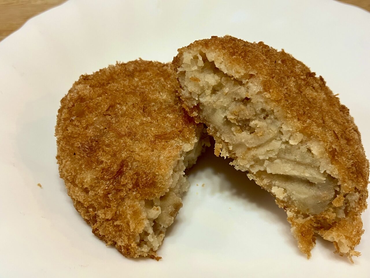 ホクホクというより「なめらか寄り」のじゃがいも感が印象的でした。お肉もしっかり感じられ、ご飯に合うコロッケ!ソースをかけなくても美味しく食べられるしっかりした味付けでした。「尖った個性がある」というよりは、毎日食べても飽きない、安心感のあるコロッケです。おかずの一品に、子どもから大人まで愛されそう。
