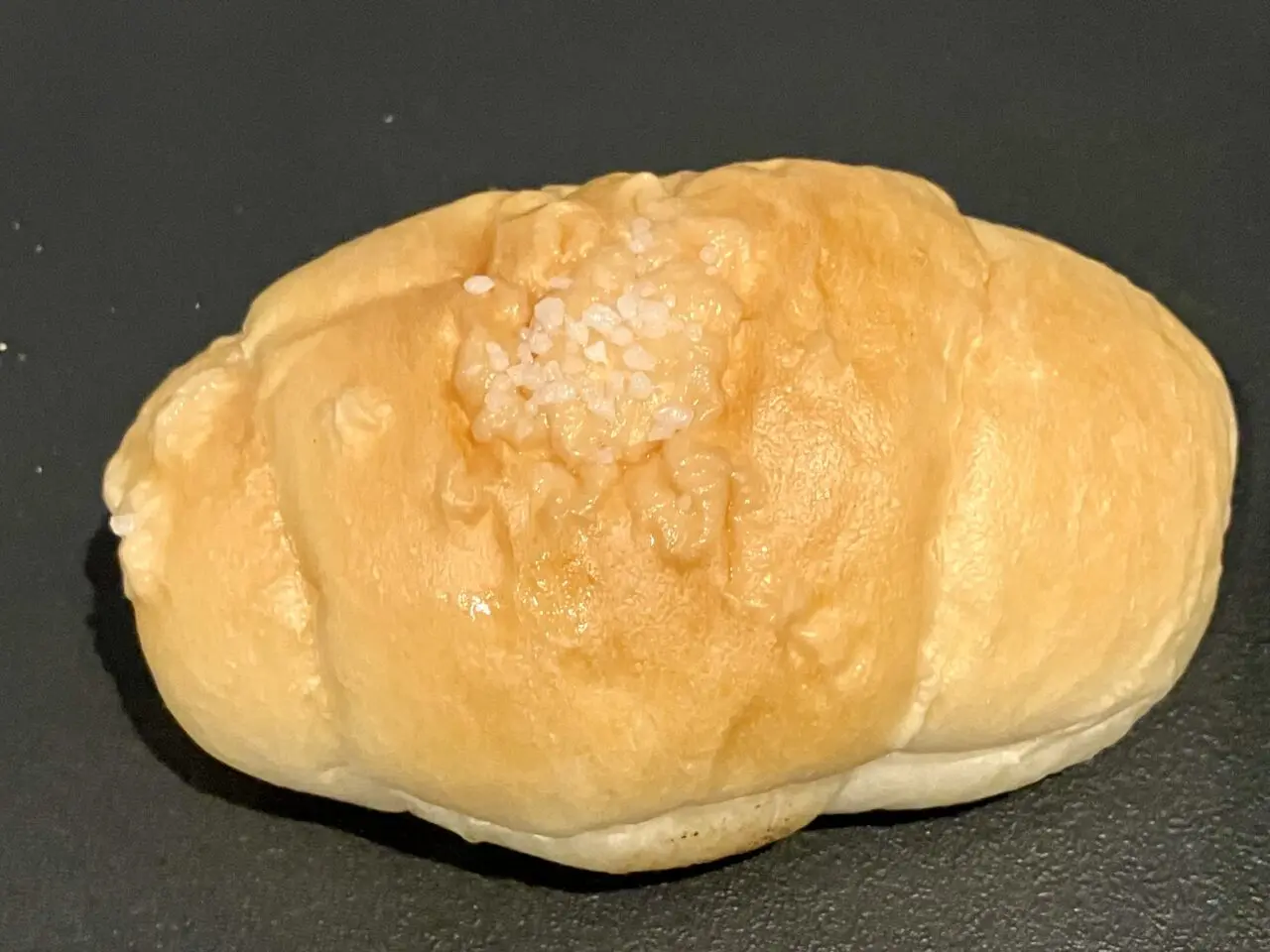 アルプス産の岩塩を使われています。プレッツェルに使用される大きな粒が特徴の粗挽き岩塩だそうです。生地はふんわり柔らかく、ほんのり小麦の甘みを感じます。バターがじゅわっと溶け出すタイプではなく、塩気が強めでこちらはスープなど食事と一緒に楽しみたいパンでした。