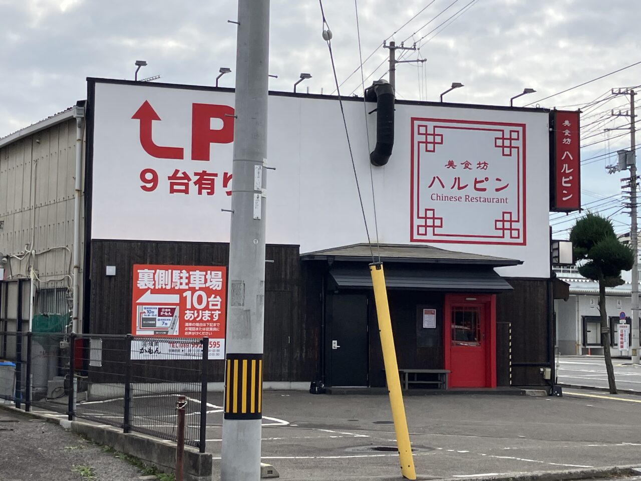 環状線沿い、ヤマダデンキ YAMADA web.com松山問屋町店、ラウンドワンスタジアム松山店などが近くにあります。入口に貼り紙がありました。