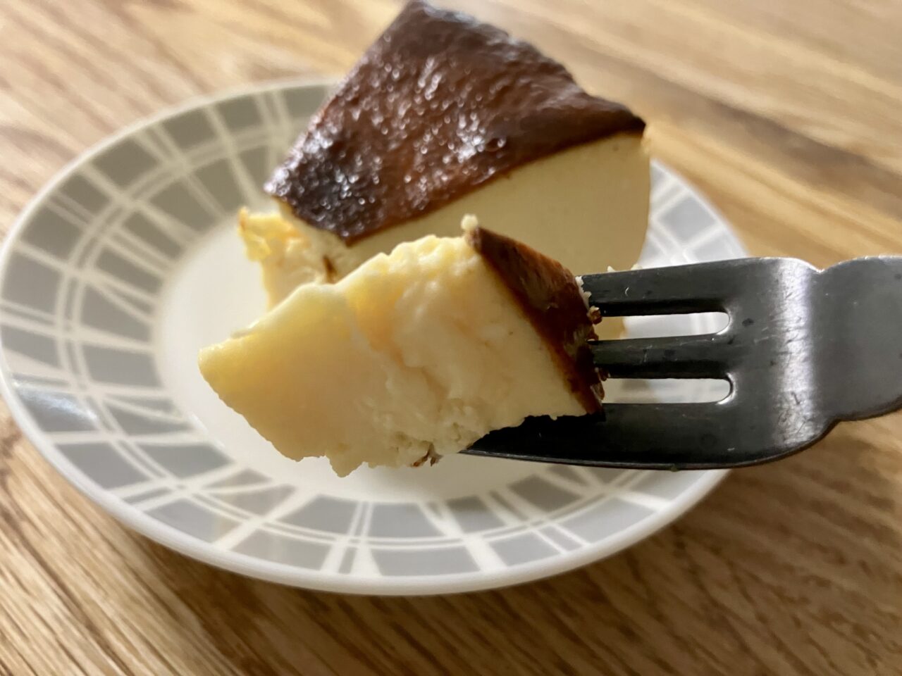 とら八のお弁当と一緒に買いやすい、食後にちょうどいいサイズ感と値段です。バスクチーズケーキは、表面はしっかり黒く焼き色がついていて、中はとろっとなめらかな食感。見た目もとても美しく、一口食べると丁寧に作られているのが伝わる味わいでした。