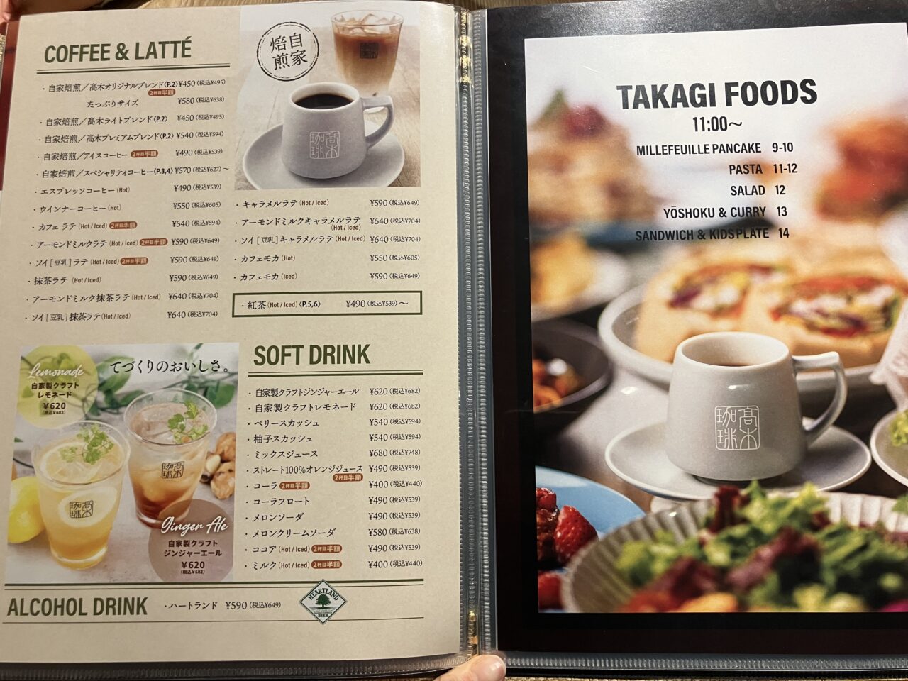 世界各地から厳選した豆を使用し、店内で丁寧に自家焙煎された「TAKAGIブレンド」などのコーヒーはもちろん、紅茶やハーブティーなどの種類も豊富に揃っています。