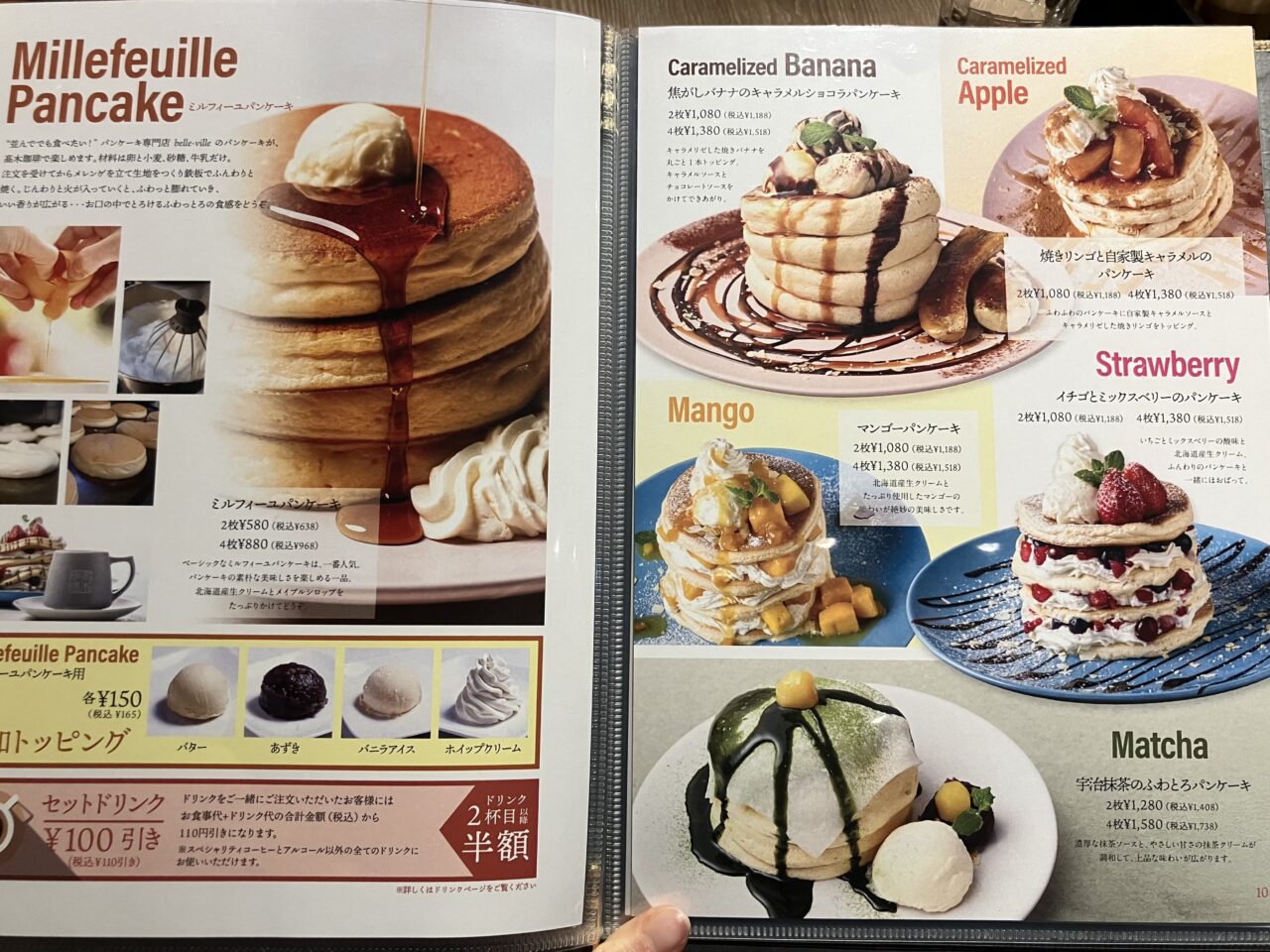 ・ミルフィーユパンケーキ…ドリンク代+495円(2枚)、ドリンク代+748円(4枚)