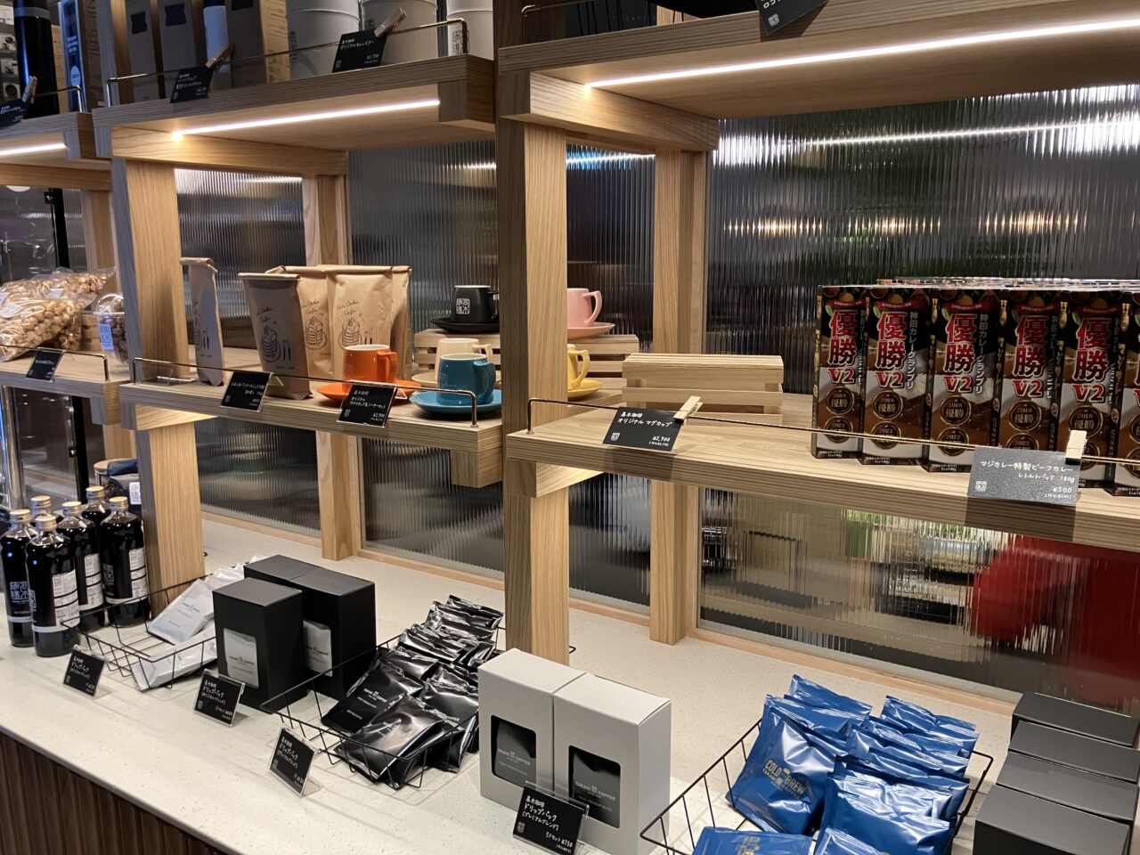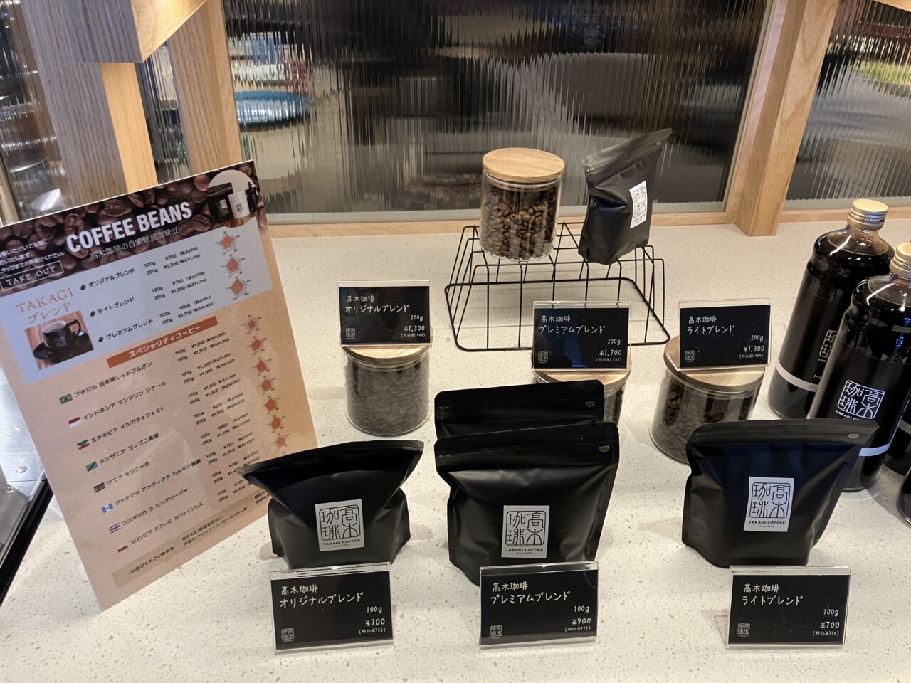 店頭では、髙木珈琲のロゴが入ったコーヒー豆やドリップバッグ、オリジナルカップなども販売されています。