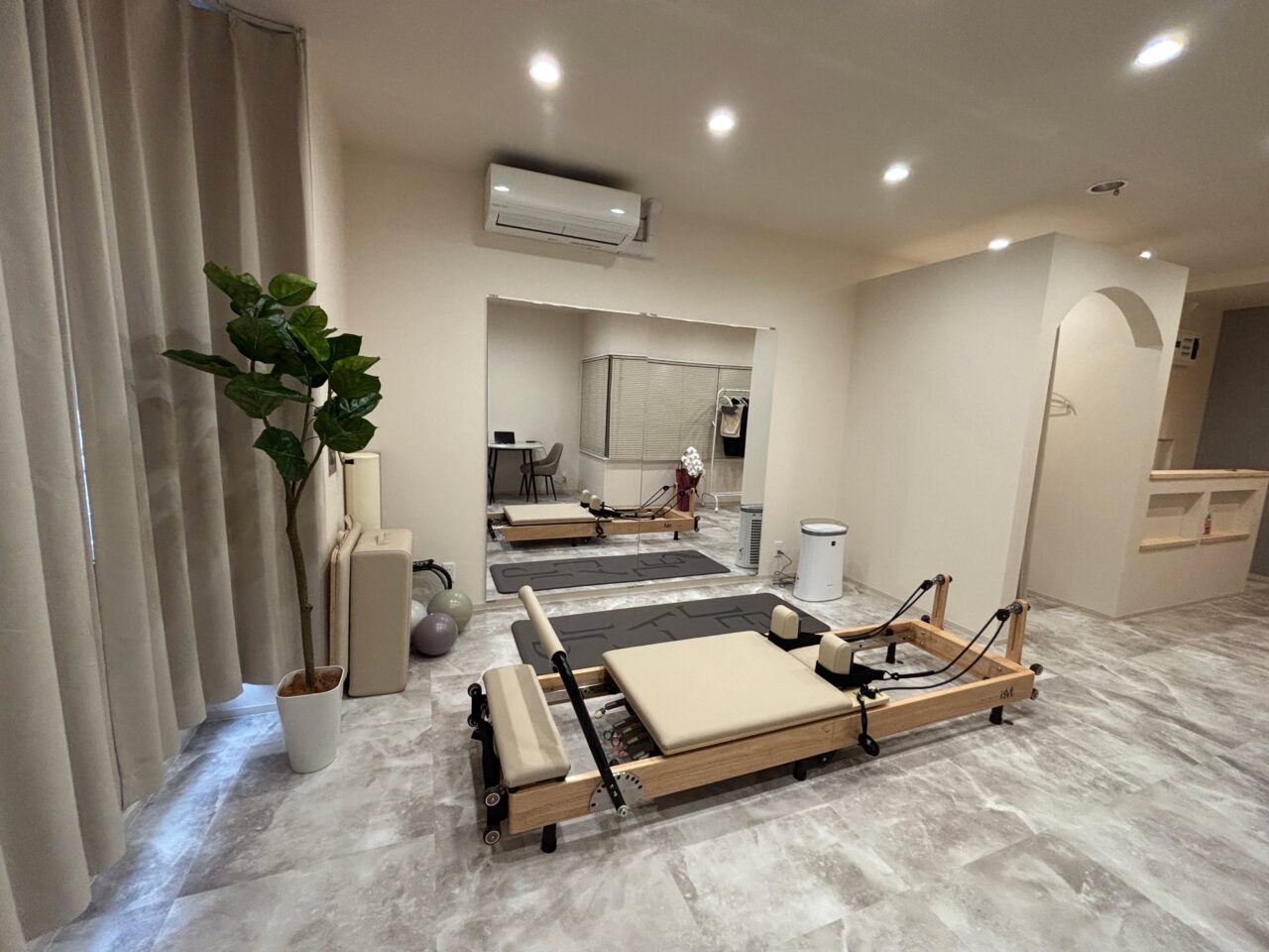 「リフォーマー」は、気になる部位をピンポイントで鍛えたり、一人ひとりの筋力に合わせて負荷を細かく調整できたりと、非常に効率的なトレーニングが可能。完全個室のプライベート空間なので、初心者の方や「人目が気になって集中できない」という方も、リラックスして自分自身の体と向き合うことができます。